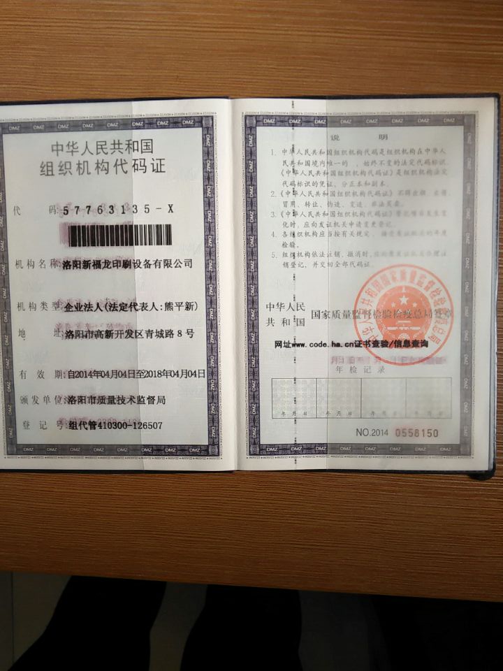 洛阳新福龙印刷设备有限公司 >> 资质证书
